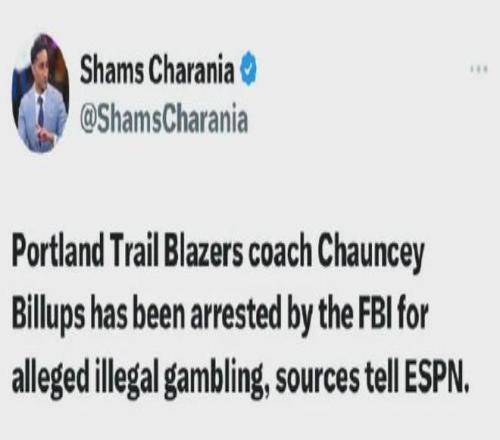 开拓者主帅比卢普斯因参与非法赌博被逮捕,该案件还涉及黑手党的非法扑克经营。