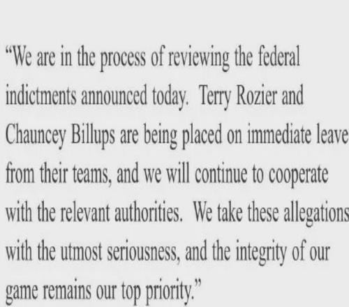 最新消息显示,NBA官方已经勒令比卢普斯和罗齐尔立即从所属球队离职。