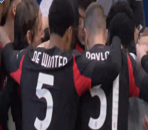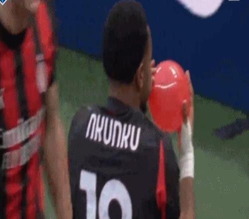 打入意甲处子球之后,米兰球员将恩昆库围起来不断拍打其头部,随后,恩昆库吹起了红色气球,庆祝自己的意甲处子球。